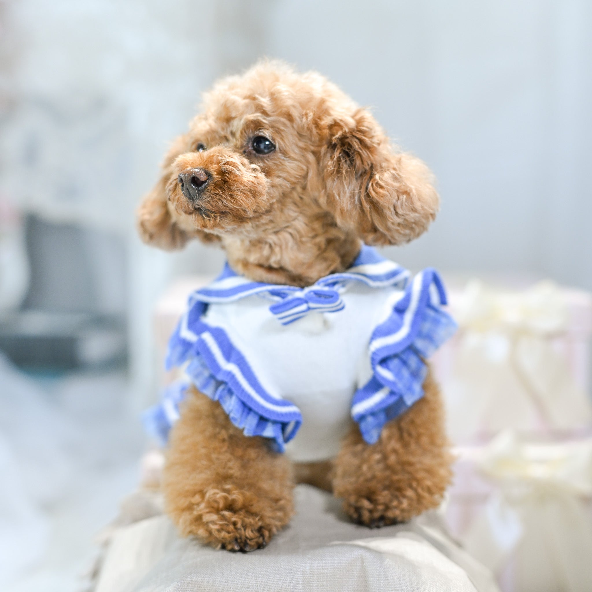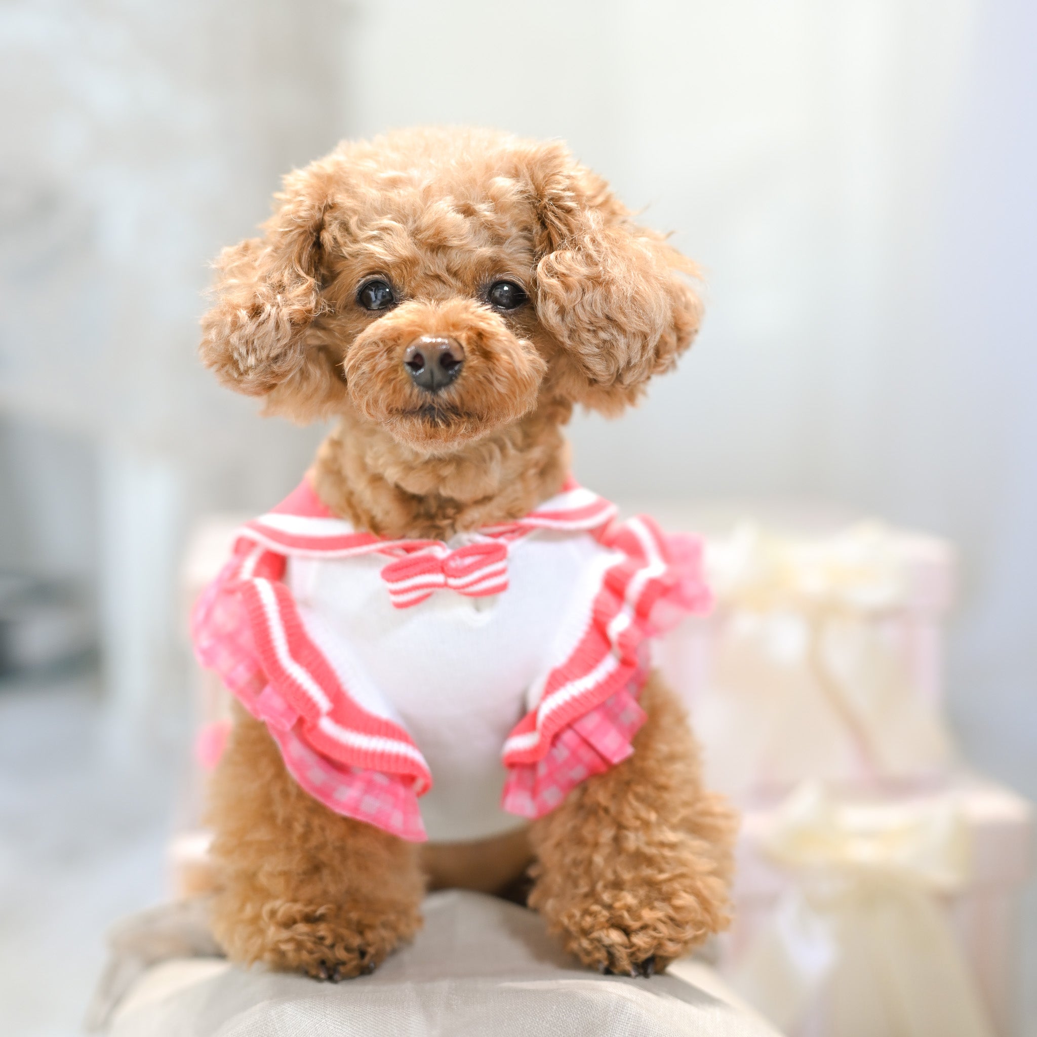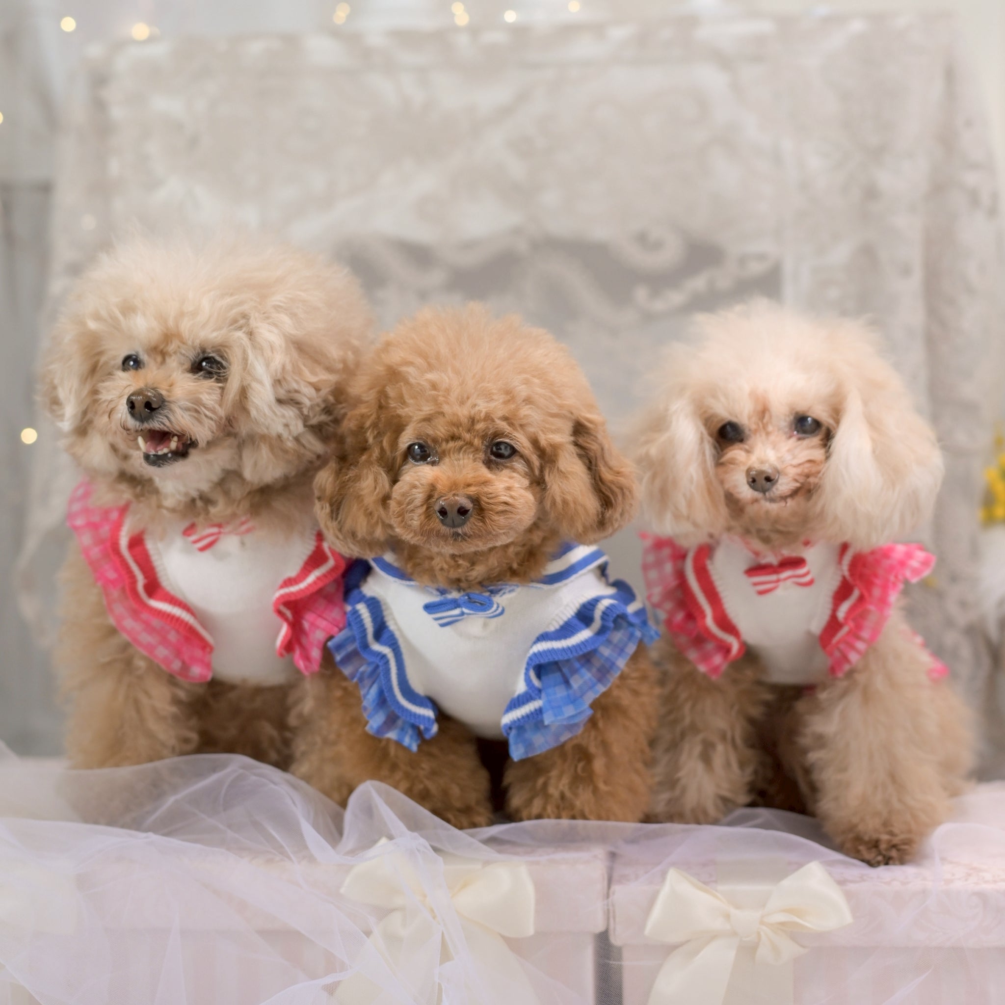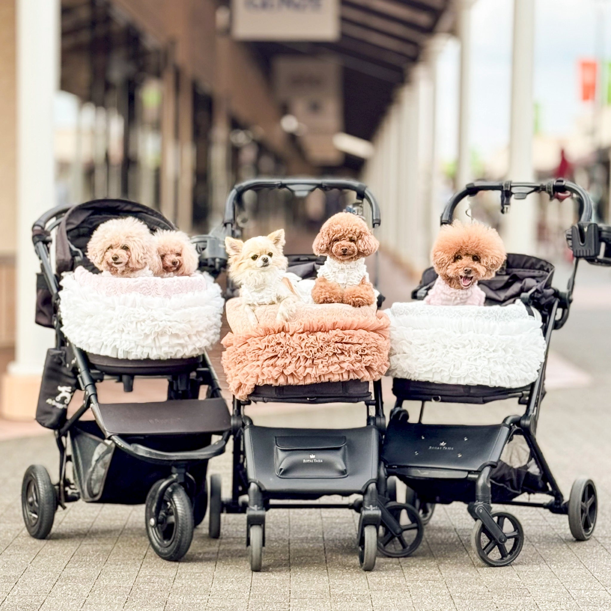 3月25日発送開始予定です。 カートを華やかに彩るレースチュールフリルカートカバー。 たっぷりと重ねたチュールフリルと繊細なレース生地が、いつものカートを上品で可愛らしい印象にしてくれます。 カートのフロントにふんわりと広がるデザインはお出かけやカフェでも愛犬をより可愛く引き立ててくれるアイテム。 軽やかなチュールと柔らかなレース素材で季節を問わずお使いいただけます。 カラー ホワイト清楚で華やかな印象。どんなお洋服にも合わせやすい定番カラー。 ピンクやさしいピンクが可愛らしくフェミニンなコーディネートにぴったり。 ベージュ落ち着いた上品カラー。大人っぽくナチュラルな雰囲気に。 フェイクファーカートカバーをお持ちの方へ 季節に合わせてカートカバーを変えることでお出かけコーディネートをより楽しめます。アジャスタブルナイロンベルトで装着するため、さまざまなペットカートに取り付け可能です。 エアバギー DOME3(レギュラー・ラージ)やロイヤルテイルズなどのカートにも対応しています。