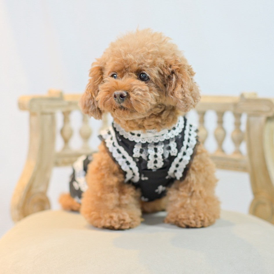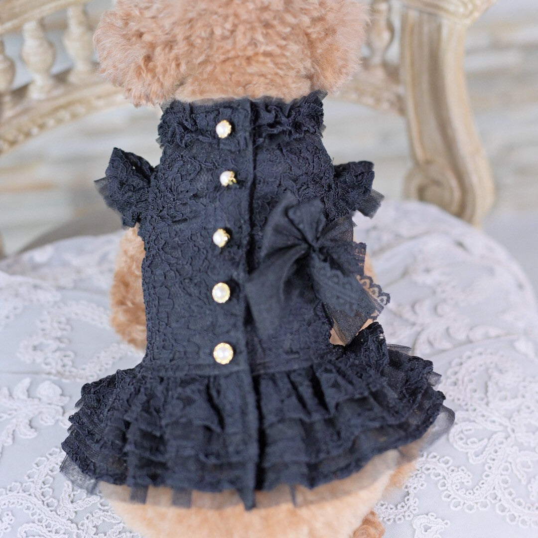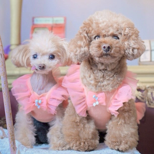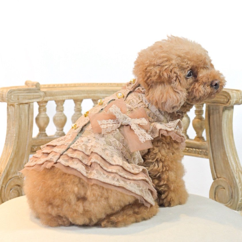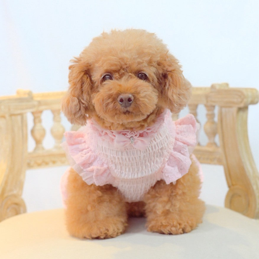 ※たくさんのご注文ありがとうございます。初回分完売の為 追加生産中です。商品の発送は 10月2日頃の 発送を予定しております。 新色 黒を追加しました。 前身がシャーリングになっているので とても着心地がよいですよ。 ふんわり可愛いシャーリングデザインに、繊細なレースを重ねた上品なワンピース。胸元のリボンとフリルがアクセントになり、特別なお出かけや記念撮影にもぴったりです。 なんと、このワンピースに使われている生地は 大人気「するっと履けるマナーパンツ」と同じ素材。通気性がよく、柔らかく伸縮性もあるので、わんこにとって快適な着心地です。 デザイン:前身はシャーリング加工で体にやさしくフィット 素材感:軽やかで柔らかい生地にレースをプラス カラー:ピンク(華やかで可愛い)、ベージュ(ナチュラルで上品)、黒(これからのシーズンにぴったり) ふんわり可愛いシャーリングデザインに、繊細なレースを重ねた上品なワンピース。胸元のリボンとフリルがアクセントになり、特別なお出かけや記念撮影にもぴったりです。 ポイント:人気マナーパンツと同じ生地で安心&快適 動きやすさと可愛さを兼ね備えた一着で、普段使いから撮影会、パーティーまで幅広く活躍します。 伸縮性はありません。後ろパチパチ釦あきで着脱らくらくです。