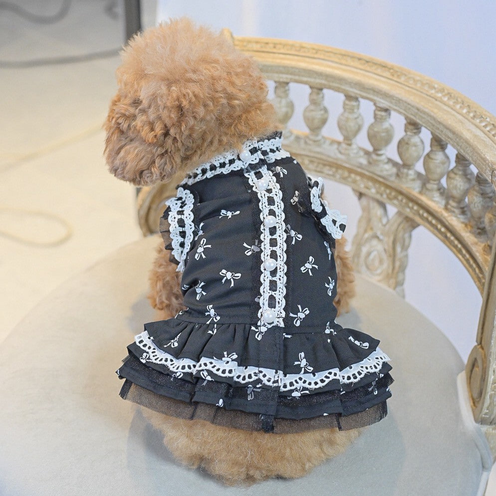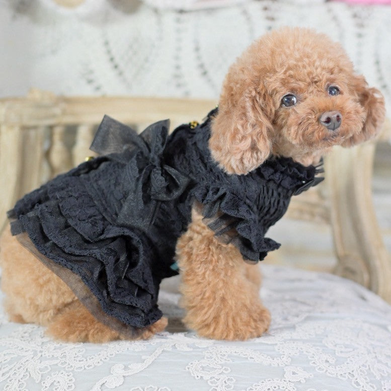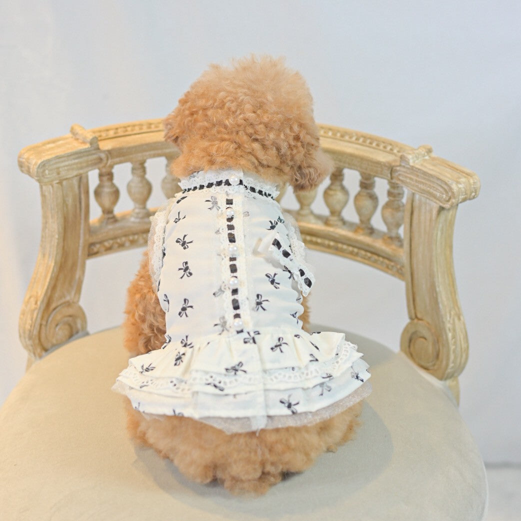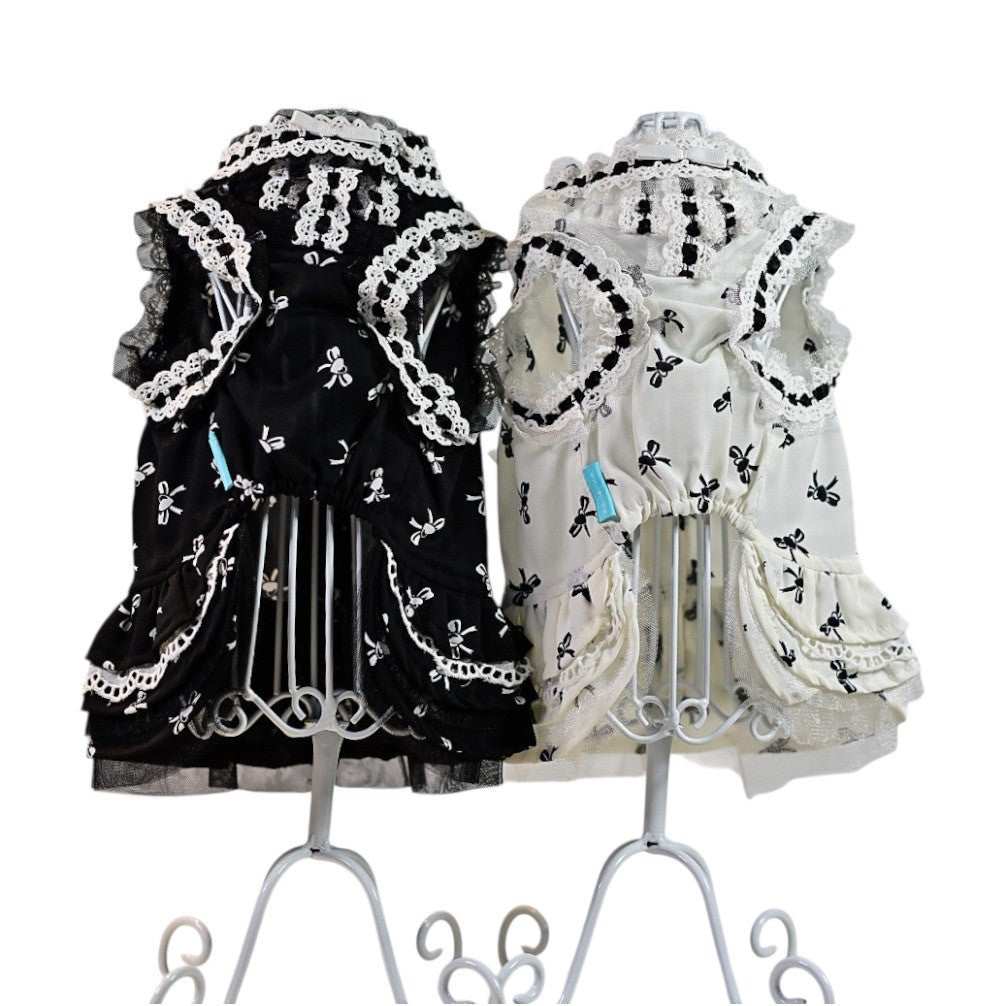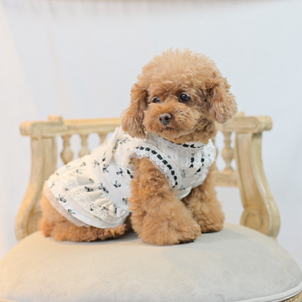 ※たくさんのご注文ありがとうございます。初回分完売の為 追加生産中です。商品の発送は 10月2日頃の 発送を予定しております。 新色 黒を追加しました。 前身がシャーリングになっているので とても着心地がよいですよ。 ふんわり可愛いシャーリングデザインに、繊細なレースを重ねた上品なワンピース。胸元のリボンとフリルがアクセントになり、特別なお出かけや記念撮影にもぴったりです。 なんと、このワンピースに使われている生地は 大人気「するっと履けるマナーパンツ」と同じ素材。通気性がよく、柔らかく伸縮性もあるので、わんこにとって快適な着心地です。 デザイン:前身はシャーリング加工で体にやさしくフィット 素材感:軽やかで柔らかい生地にレースをプラス カラー:ピンク(華やかで可愛い)、ベージュ(ナチュラルで上品)、黒(これからのシーズンにぴったり) ふんわり可愛いシャーリングデザインに、繊細なレースを重ねた上品なワンピース。胸元のリボンとフリルがアクセントになり、特別なお出かけや記念撮影にもぴったりです。 ポイント:人気マナーパンツと同じ生地で安心&快適 動きやすさと可愛さを兼ね備えた一着で、普段使いから撮影会、パーティーまで幅広く活躍します。 伸縮性はありません。後ろパチパチ釦あきで着脱らくらくです。