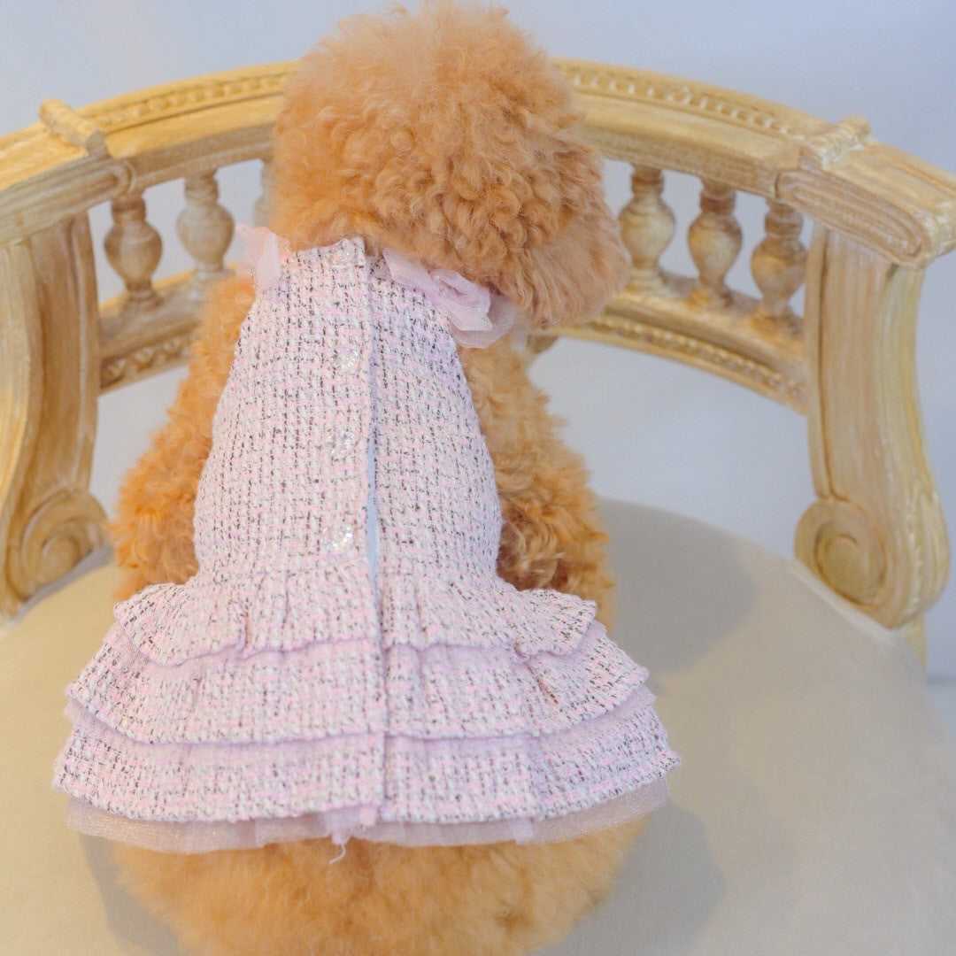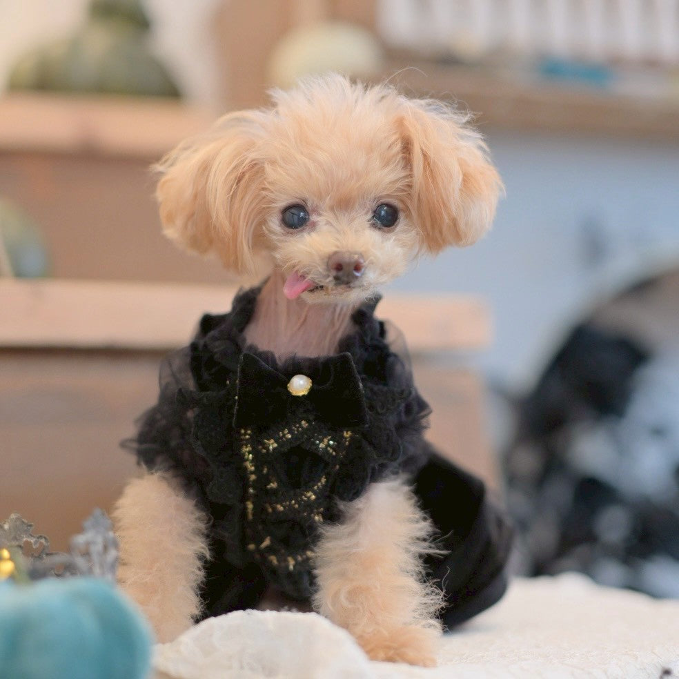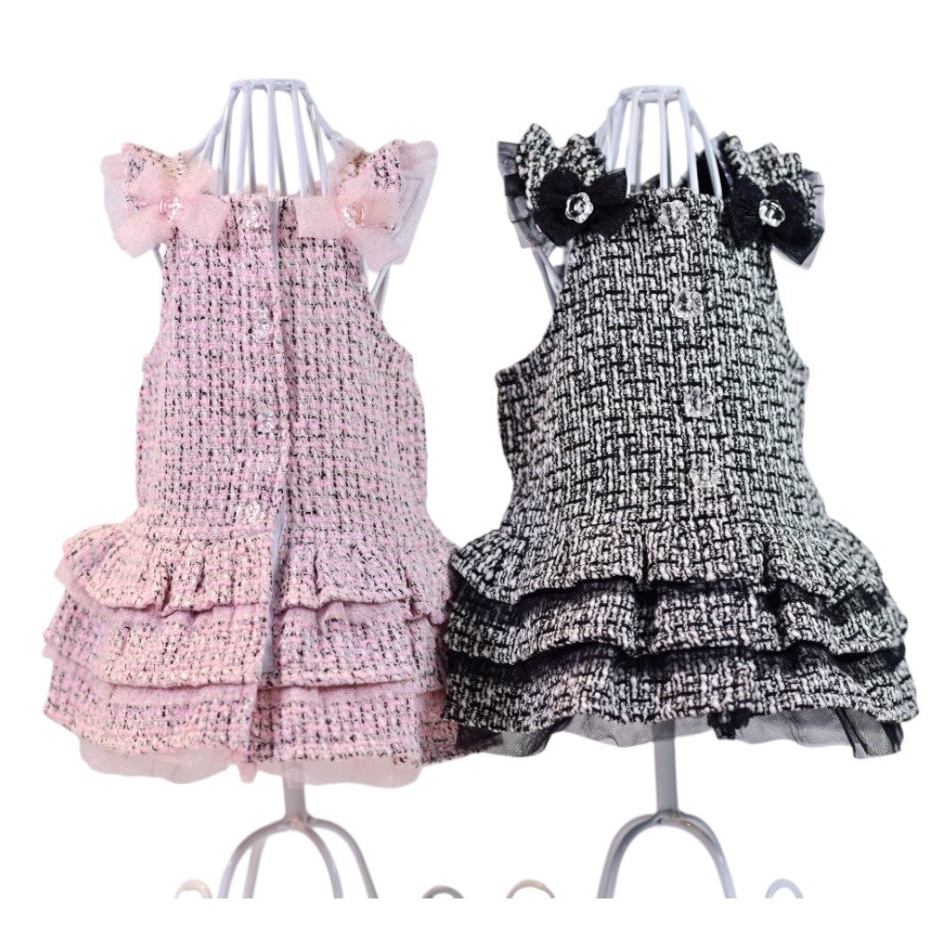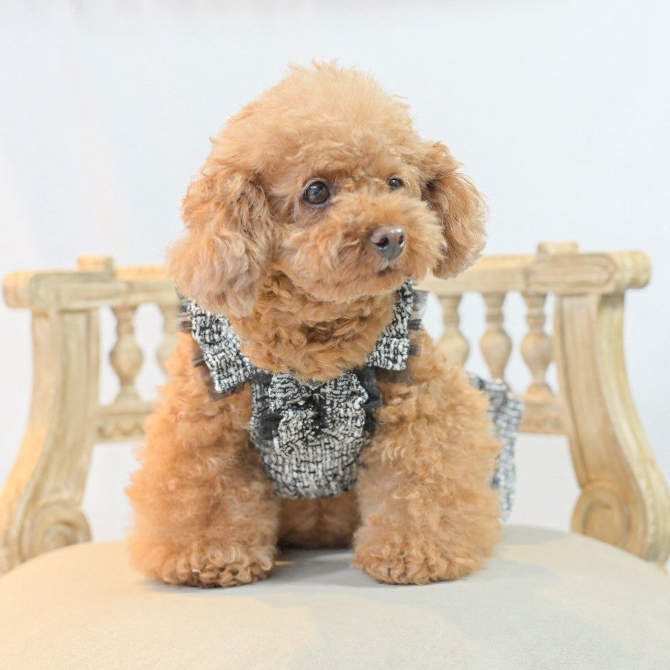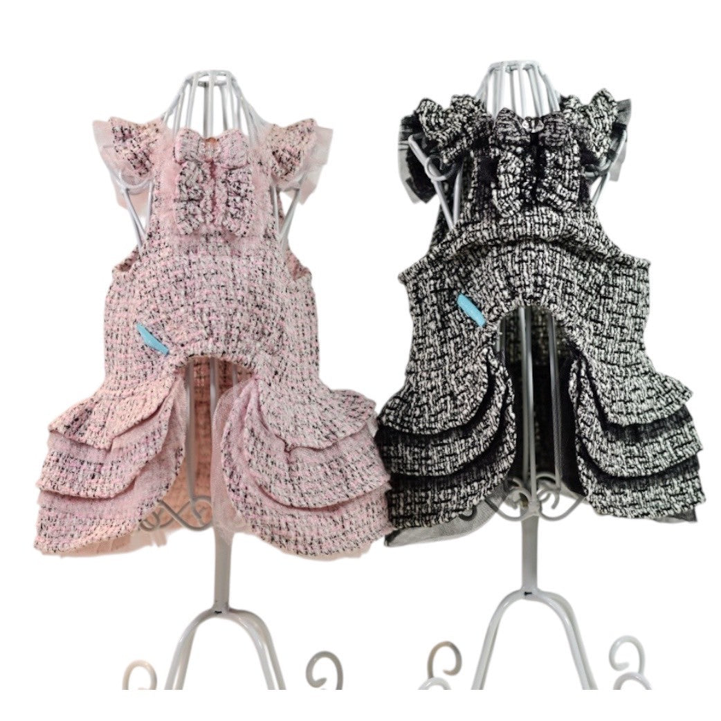 ※たくさんのご注文ありがとうございます。初回分完売の為 追加生産中です。商品の発送は 10月2日頃の 発送を予定しております。 高級感のあるツイード調生地に、ふんわり広がるフリルとリボンをプラス。特別な日のおめかしはもちろん、普段のお散歩やカフェでも楽しめる、毎日着せたくなる一枚です。 着映えするデザインだから、撮影会や記念日フォトにもぴったり カラー展開 ピンク:淡い色合いだから、わんちゃんを ふんわりかわいくみせてくれる♡ 黒:クラシカルな黒が、わんちゃんを 上品にみせてくれる 大人可愛いカラー 特徴 高級感のあるツイード調生地 動くたびに揺れる華やかフリル リボン付きで特別感を演出 伸縮性はありませんので、サイズをご確認ください...