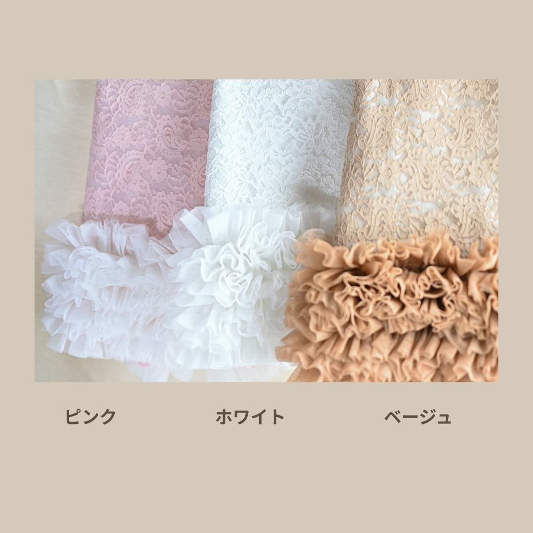 縦柄レース マナーパンツ(マジックテープタイプ)新色を追加いたしました。 フリルをたっぷりあしらった、上品なレース仕立てのマナーパンツです。 紙おむつと同じテープ仕様で着せやすく、マジックテープタイプがお好きな方にも安心してお使いいただけます。 ベージュカラーについて 「マジックテープタイプに、ベージュはありませんか?」そんなお声から、ベージュカラー をお作りしました。 縦柄レースにはベージュのお色がなかったため、ベージュには やさしい印象のお花柄レース を使用しています。白・黒には縦柄レースを使用しています。 ※胴回り31cm、ウエスト29cmのけいとは SSSサイズを着用しております。カラーは 白・黒・ベージュの3色です。サイズは 5S・4S・SSS・SS・S・M の6サイズです。お値段は 1枚 5000円になります。*サイズはサイズ表でご確認ください。ウエストサイズを確認してくださいね。*ウエストはマジックテープでとめる仕様です。*ウエストに少しですが、ゴムを使用しております。*商品の性質上サイズはピッタリサイズにする必要がございます。KALINAの試着サービス「サイズに迷ったら」300円を是非ご利用下さい。ご注文の際は、備考欄にお試しいただくサイズをご入力下さいね!
