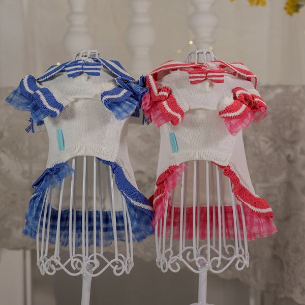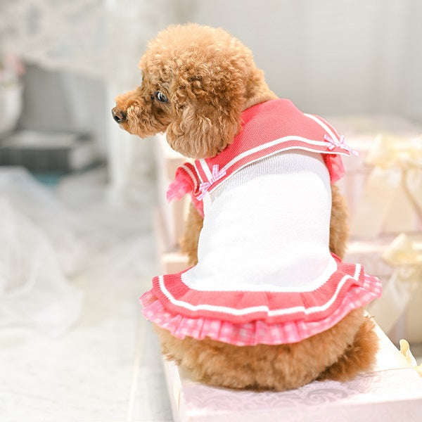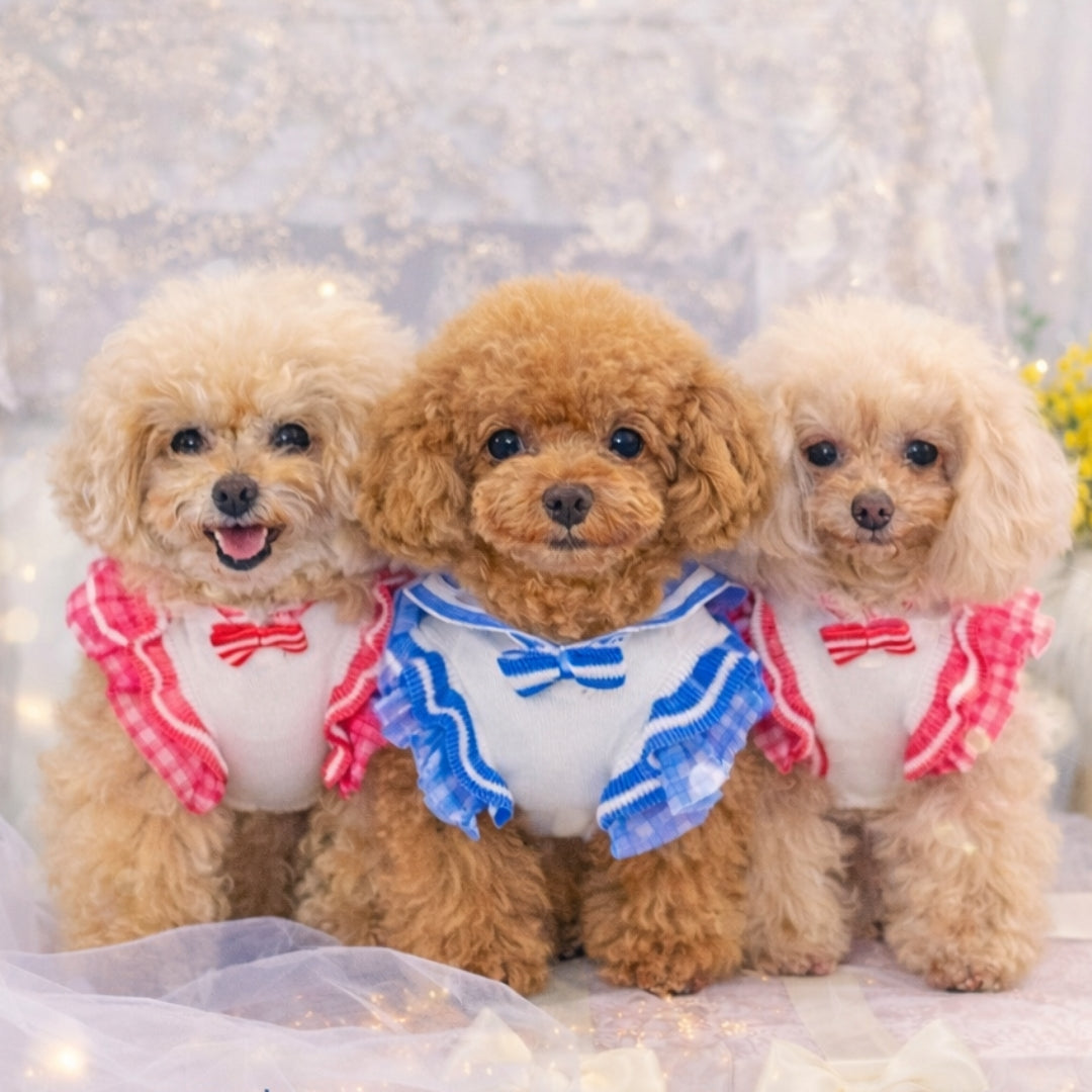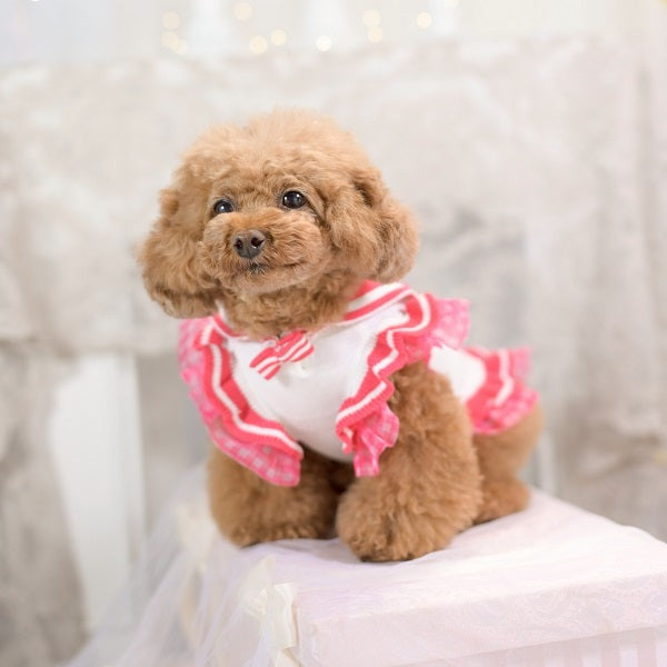 新色 黒を追加しました。 前身がシャーリングになっているので とても着心地がよいですよ。 ふんわり可愛いシャーリングデザインに、繊細なレースを重ねた上品なワンピース。胸元のリボンとフリルがアクセントになり、特別なお出かけや記念撮影にもぴったりです。 なんと、このワンピースに使われている生地は 大人気「するっと履けるマナーパンツ」と同じ素材。通気性がよく、柔らかく伸縮性もあるので、わんこにとって快適な着心地です。 デザイン:前身はシャーリング加工で体にやさしくフィット 素材感:軽やかで柔らかい生地にレースをプラス カラー:ピンク(華やかで可愛い)、ベージュ(ナチュラルで上品)、黒(これからのシーズンにぴったり) ふんわり可愛いシャーリングデザインに、繊細なレースを重ねた上品なワンピース。胸元のリボンとフリルがアクセントになり、特別なお出かけや記念撮影にもぴったりです。 ポイント:人気マナーパンツと同じ生地で安心&快適 動きやすさと可愛さを兼ね備えた一着で、普段使いから撮影会、パーティーまで幅広く活躍します。 伸縮性はありません。後ろパチパチ釦あきで着脱らくらくです。