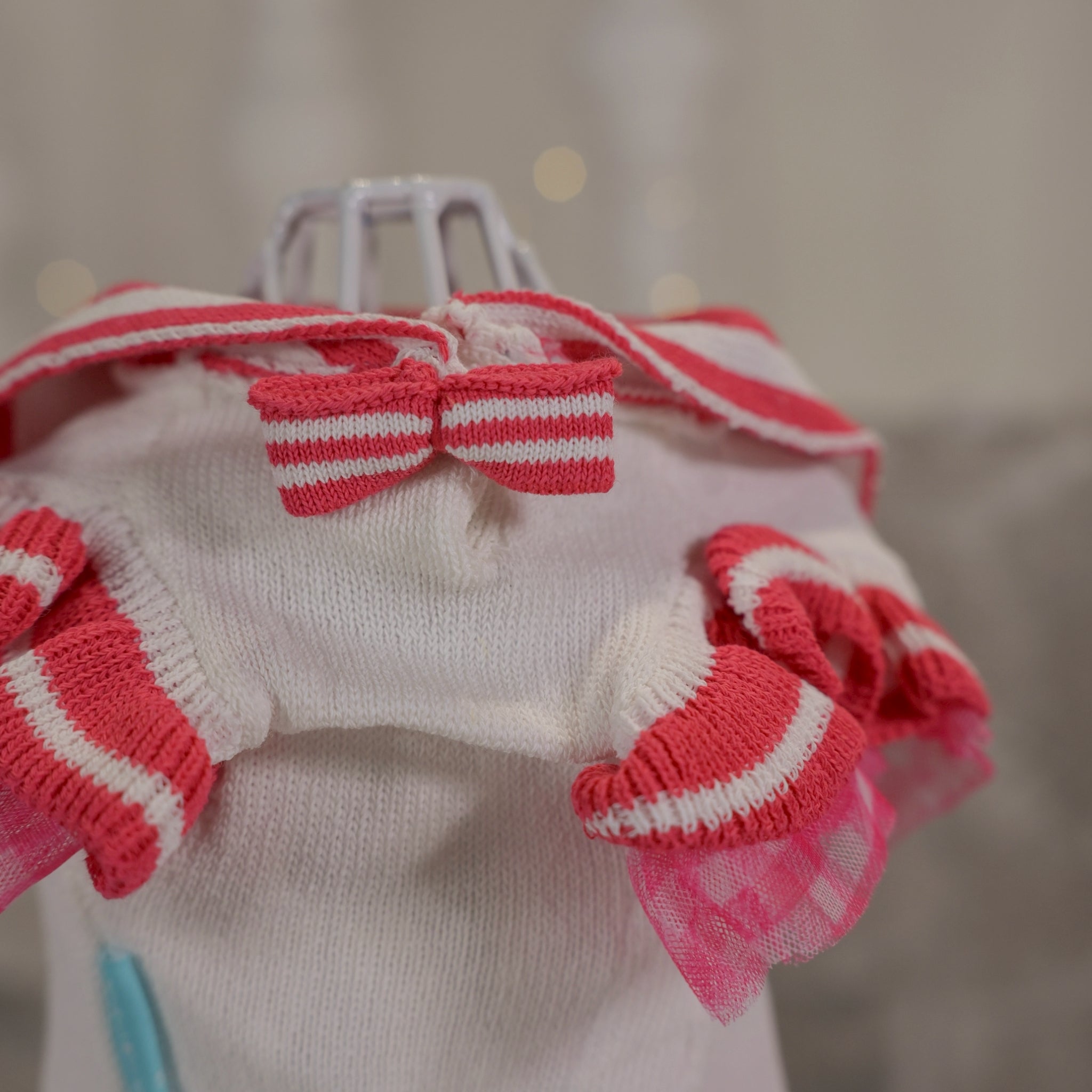 まわりにたっぷりあしらわれたチュールフリルは、とってもゴージャス。ふんわり広がるフリルがレースの上品さを引き立て、華やかで存在感のある一枚に仕上がりました。 XSサイズは 1わんちゃんから2わんちゃんにおすすめです。 さらに、レースとすべり止めの間には薄い中綿をプラス。わんちゃんが乗ったときの脚ざわりもふんわり柔らかく、見た目の可愛らしさだけでなく快適さも叶えます。裏側はすべり止め加工で安心してお使いいただけるので、カフェやお出かけ先でも大活躍。 カラー:ホワイト/黒 サイズ:XSサイズ 素材:レース 綿60ナイロン40・チュール(ポリエステル)、薄中綿、裏面すべり止め付き 特徴: ✔︎ ゴージャスなチュールフリルで特別感アップ ✔︎ 中綿入りでふんわり脚ざわり ✔︎ 裏面すべり止め付きで安心 ✔︎ 軽くて持ち運びやすい ✔︎ 撮影やインテリアにもおすすめ