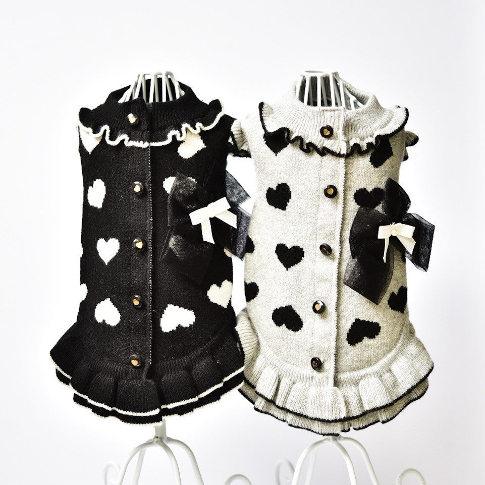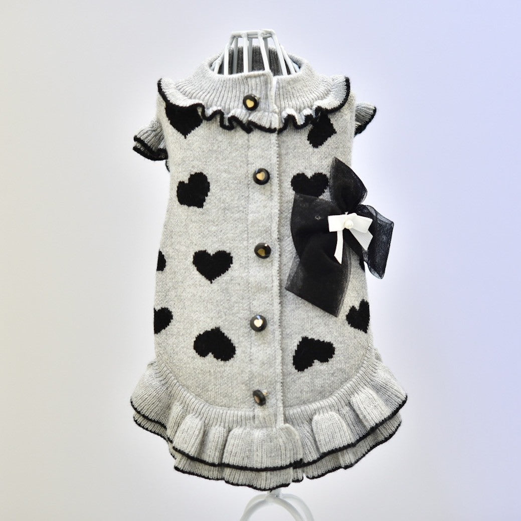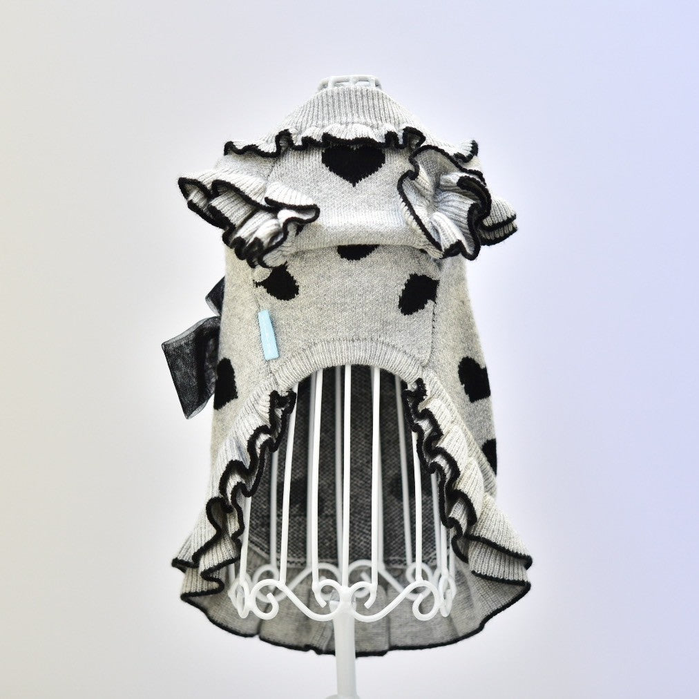 上質なカシミヤ混ニットと繊細なレースを組み合わせた、華やかで上品なワンピース。柔らかくしなやかなニット素材は、わんこの肌にもやさしく寄り添い、特別なお出かけや記念日フォトにぴったりです。 カラーは ボルドー と グレー の2色展開。 ボルドーには同系色のボルドーレースを合わせ、トレンド感と華やかさを演出。 グレーには清楚な白レースを合わせ、上品で落ち着いた印象に。 前回販売時には即完売した人気アイテム。今回も数量限定での再入荷となりますので、お早めにご覧ください。 伸縮性あります。後釦あきになります。 こちらの商品は ボタンホール始末になります。