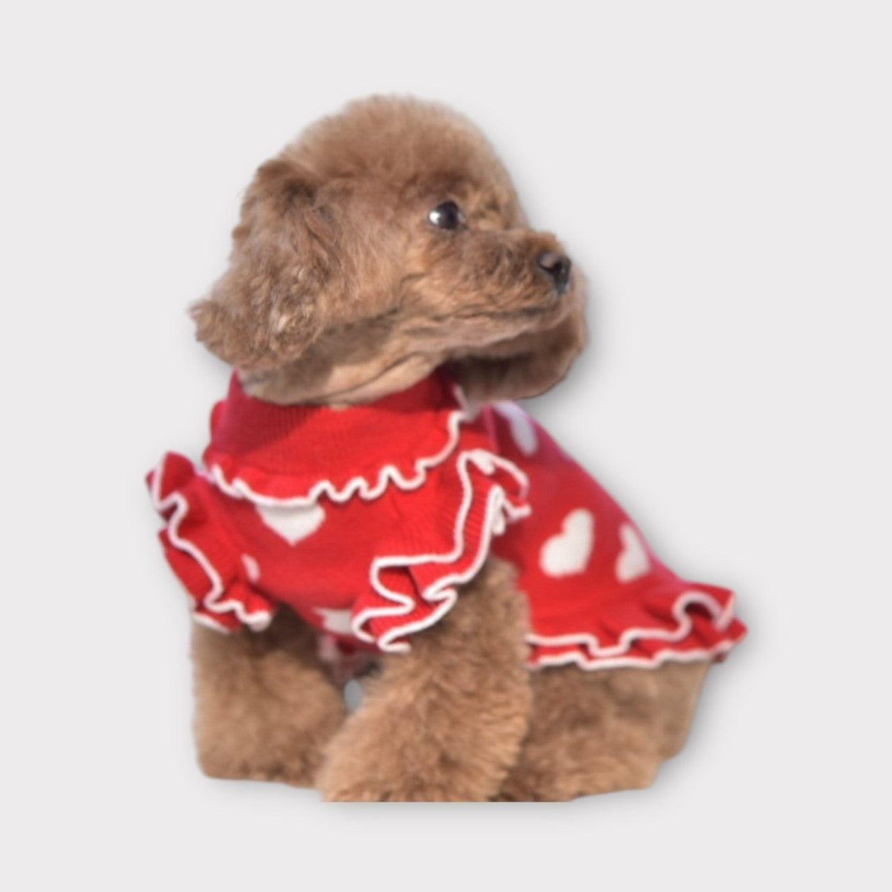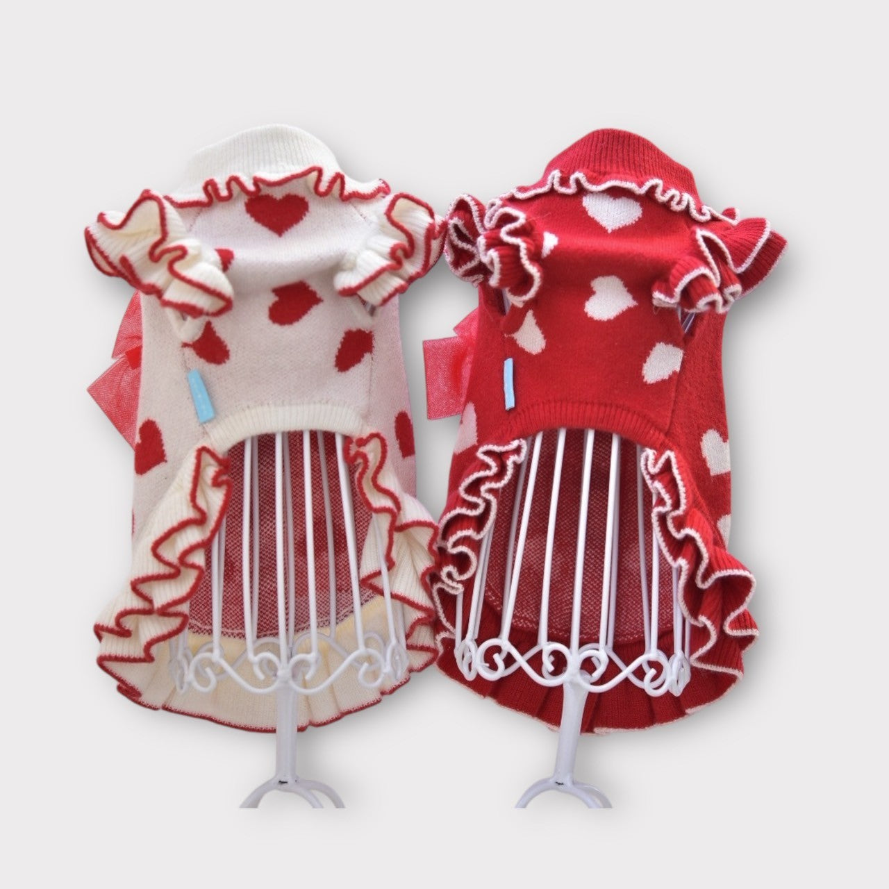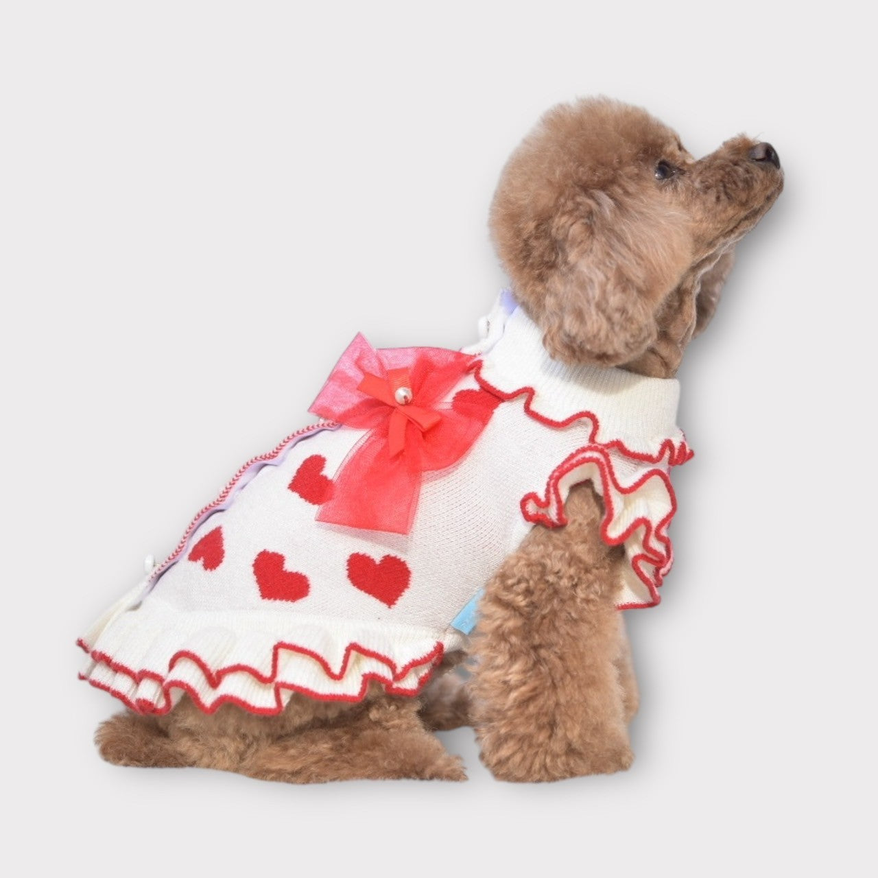 上質なカシミヤ混ニットと繊細なレースを組み合わせた、華やかで上品なワンピース。柔らかくしなやかなニット素材は、わんこの肌にもやさしく寄り添い、特別なお出かけや記念日フォトにぴったりです。 カラーは ボルドー と グレー の2色展開。 ボルドーには同系色のボルドーレースを合わせ、トレンド感と華やかさを演出。 グレーには清楚な白レースを合わせ、上品で落ち着いた印象に。 前回販売時には即完売した人気アイテム。今回も数量限定での再入荷となりますので、お早めにご覧ください。 伸縮性あります。後釦あきになります。 こちらの商品は ボタンホール始末になります。