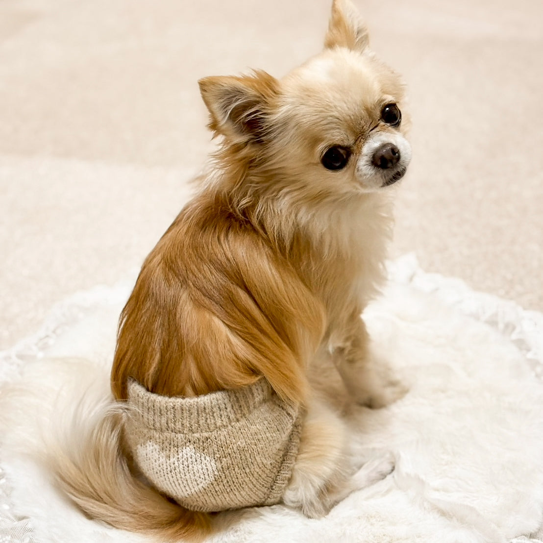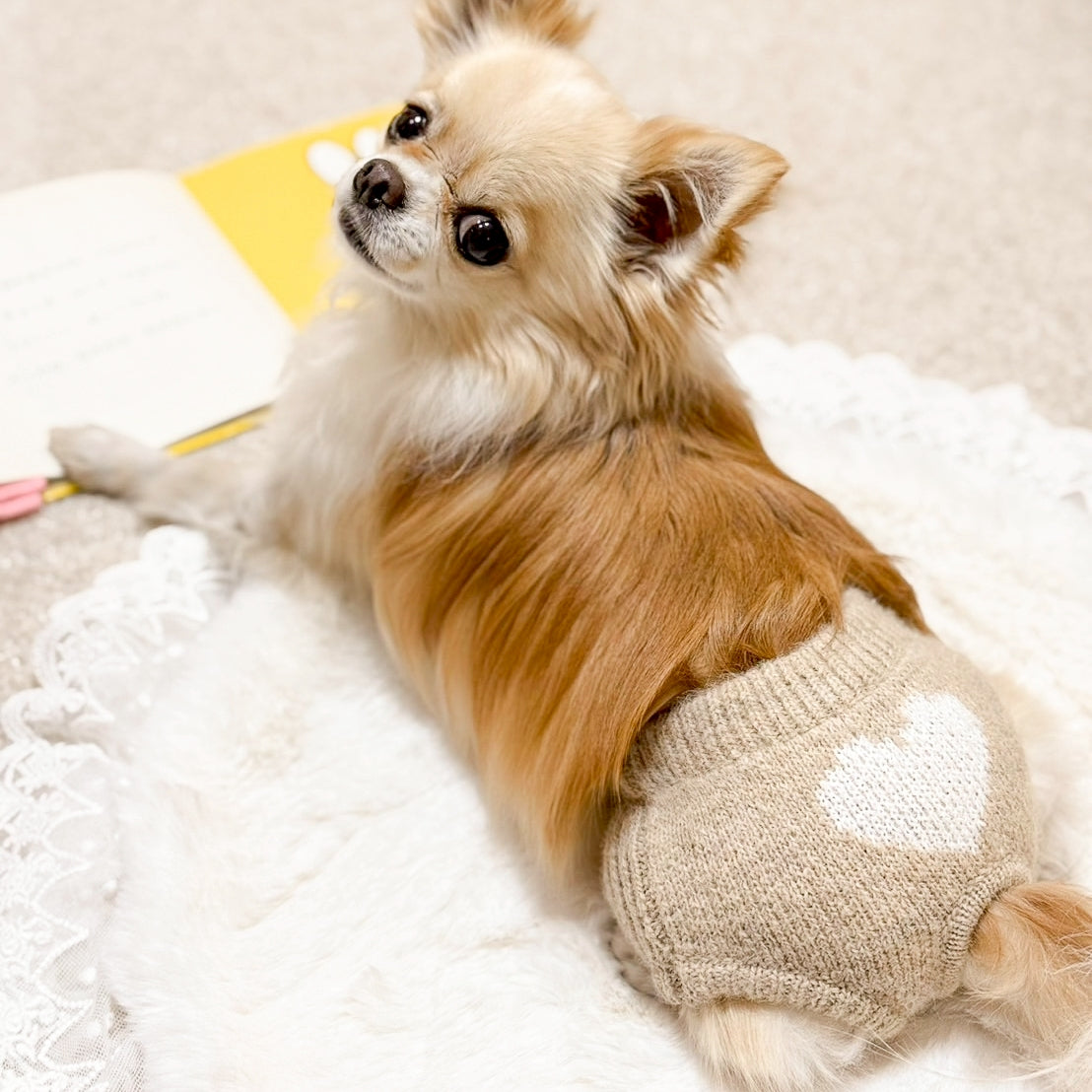 ふんわりやわらかなカシミヤ混素材でお作りした、ハート柄が可愛らしいニットワンピース。 甘くなりすぎない繊細なハートモチーフは、毎日のお散歩はもちろん、特別な日にもそっと寄り添います。 今シーズンは、🤍×❤️ 白×赤❤️×🤍 赤×白🤍×🖤 白×黒の3色展開でご用意しました。 白×赤と赤×白は、ときめきを感じるバレンタインらしい配色。新色の白×黒は、甘さを抑えた大人かわいい印象で、季節を問わず長くお楽しみいただけます。 ※なお、グレー×黒・黒×白 は在庫が残りわずかとなっております。ご希望の方はお早めにご検討ください。 伸縮性のあるニット素材で、動きやすくストレスフリーな着心地。ワンピースシルエットが、愛犬の可愛らしさをやさしく引き立てます。 バレンタインシーズンにも、その先の日常にも。特別すぎず、でもちょっと気分が上がる一着です。