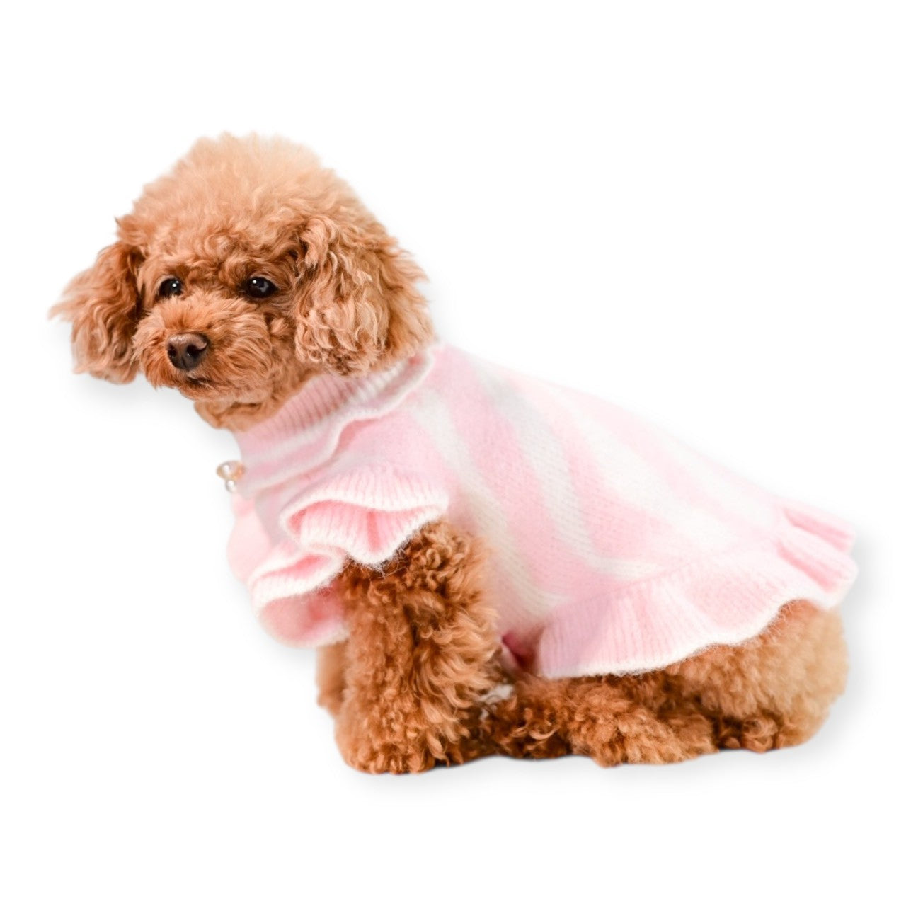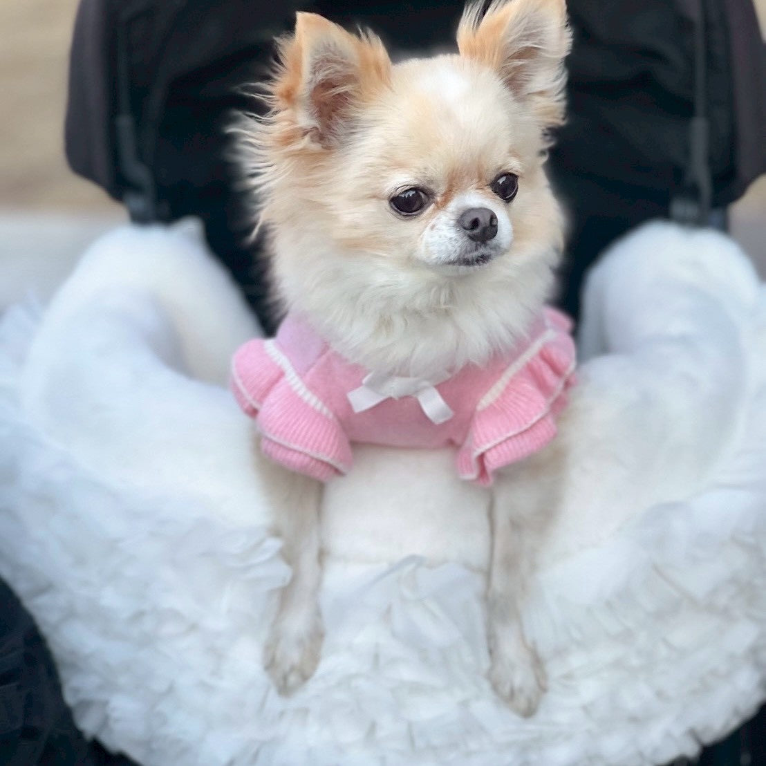 高級感のあるツイード調生地に、ふんわり広がるフリルとリボンをプラス。特別な日のおめかしはもちろん、普段のお散歩やカフェでも楽しめる、毎日着せたくなる一枚です。 着映えするデザインだから、撮影会や記念日フォトにもぴったり カラー展開 ピンク:淡い色合いだから、わんちゃんを ふんわりかわいくみせてくれる♡ 黒:クラシカルな黒が、わんちゃんを 上品にみせてくれる 大人可愛いカラー 特徴 高級感のあるツイード調生地 動くたびに揺れる華やかフリル リボン付きで特別感を演出 伸縮性はありませんので、サイズをご確認ください 着映えするデザインなので、撮影会やお散歩フォトにもぴったりです 伸縮性はありません。後ろパチパチ釦になりますので 着脱らくらくですね。