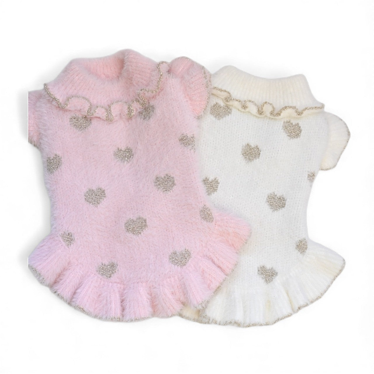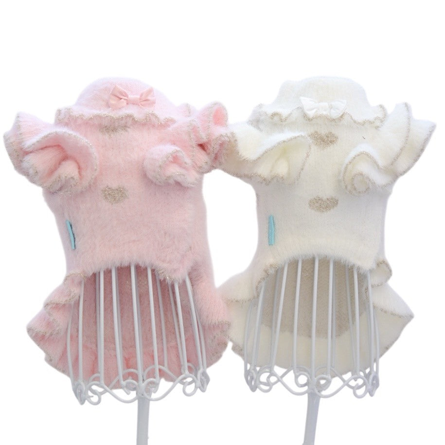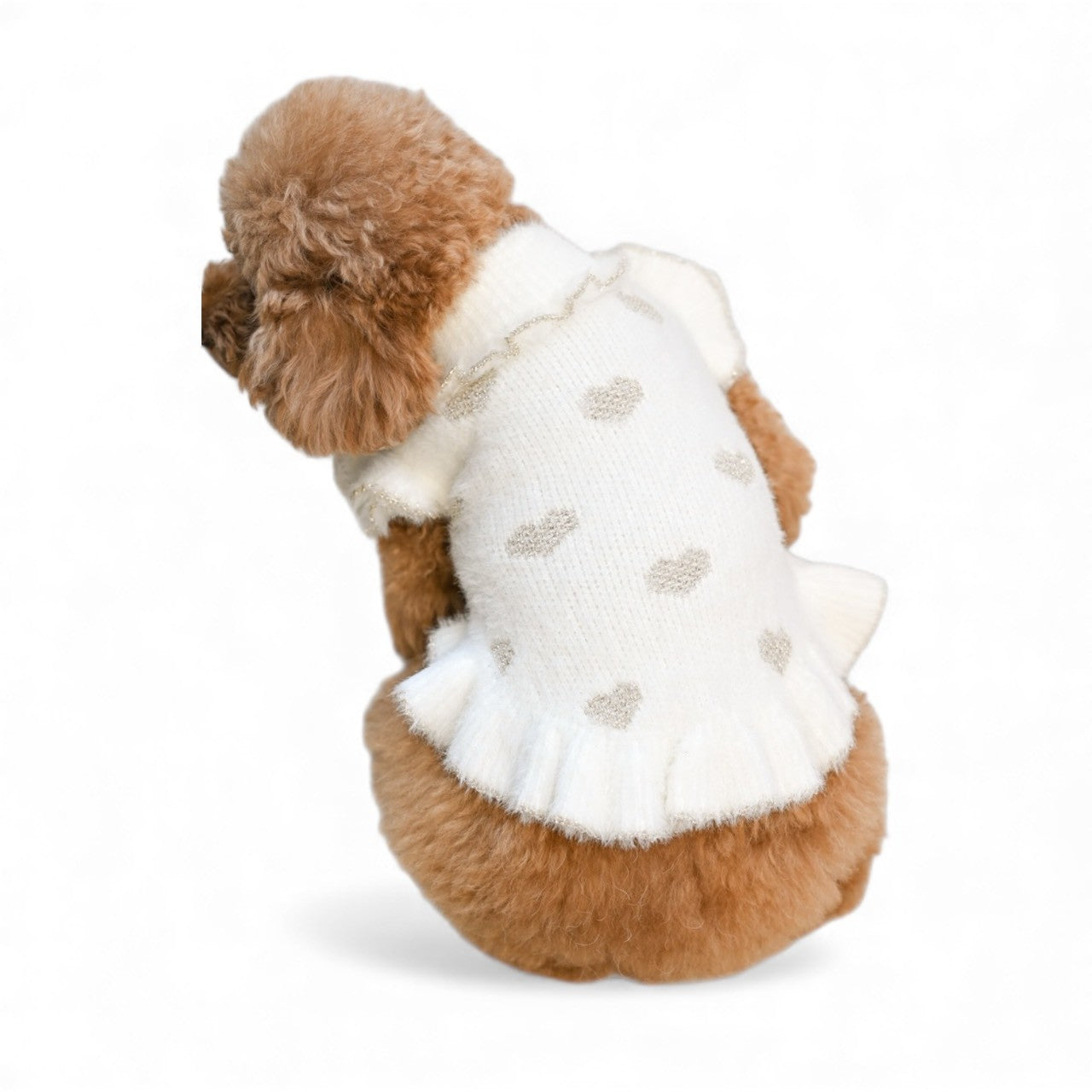 上質なカシミヤ混ニットと繊細なレースを組み合わせた、華やかで上品なワンピース。柔らかくしなやかなニット素材は、わんこの肌にもやさしく寄り添い、特別なお出かけや記念日フォトにぴったりです。 カラーは ボルドー と グレー の2色展開。 ボルドーには同系色のボルドーレースを合わせ、トレンド感と華やかさを演出。 グレーには清楚な白レースを合わせ、上品で落ち着いた印象に。 前回販売時には即完売した人気アイテム。今回も数量限定での再入荷となりますので、お早めにご覧ください。 伸縮性あります。後釦あきになります。 こちらの商品は ボタンホール始末になります。