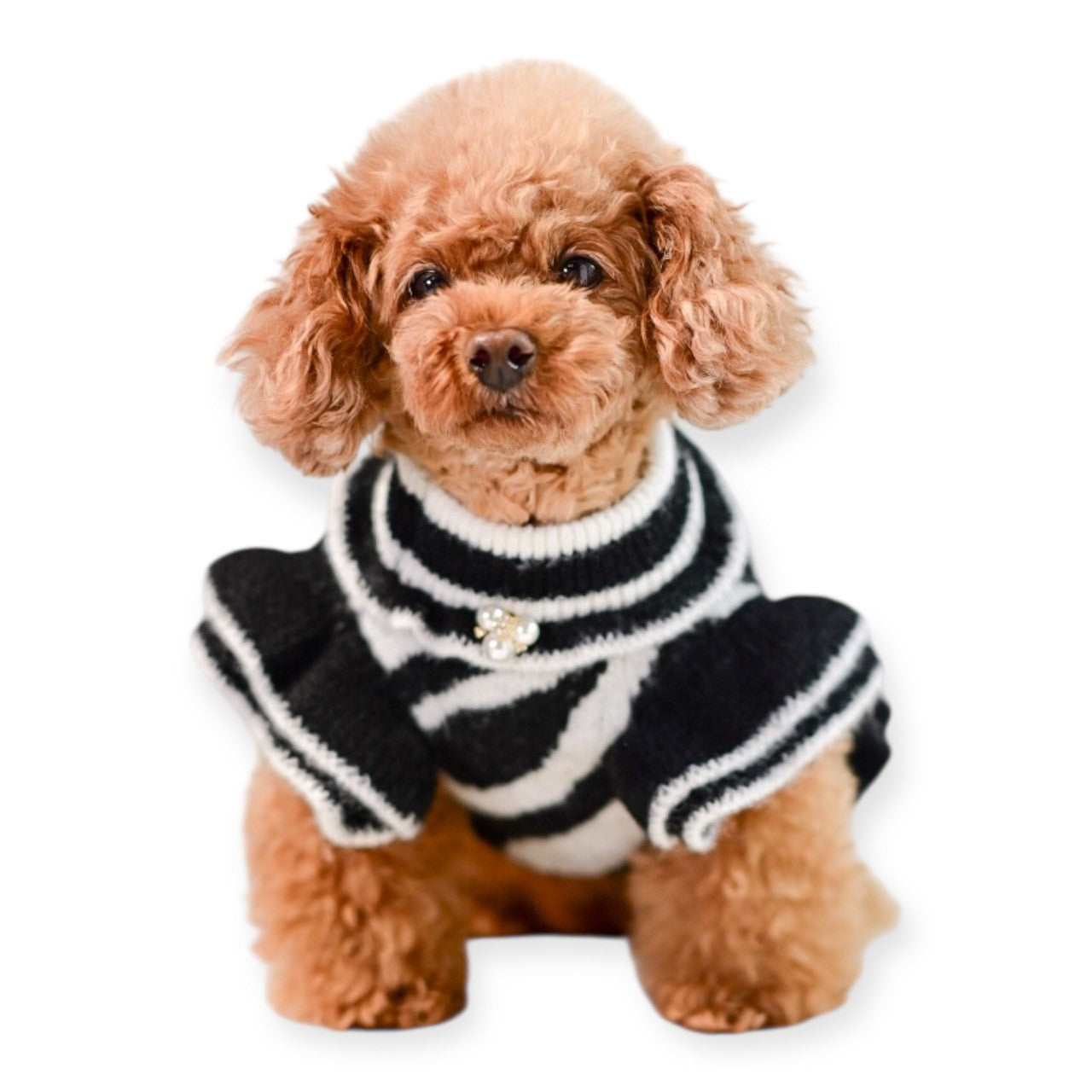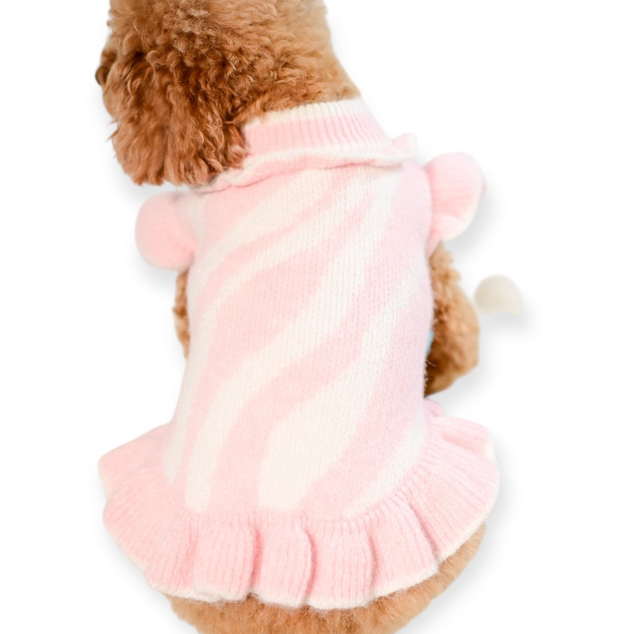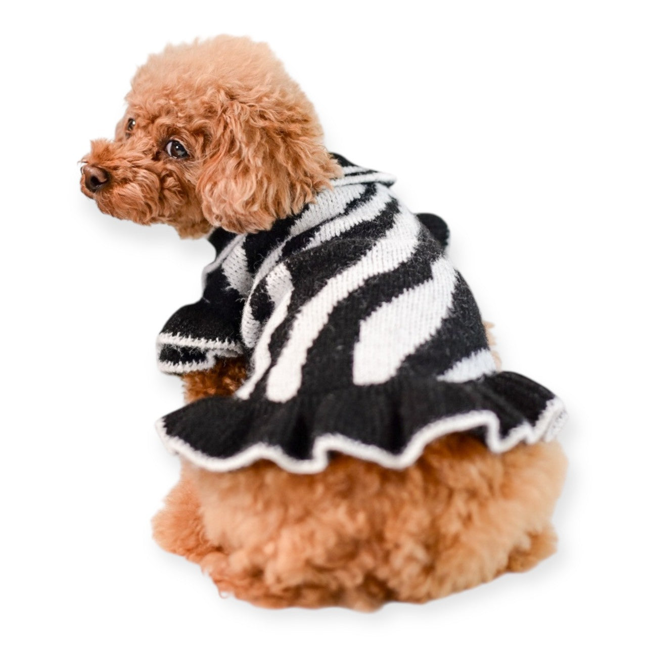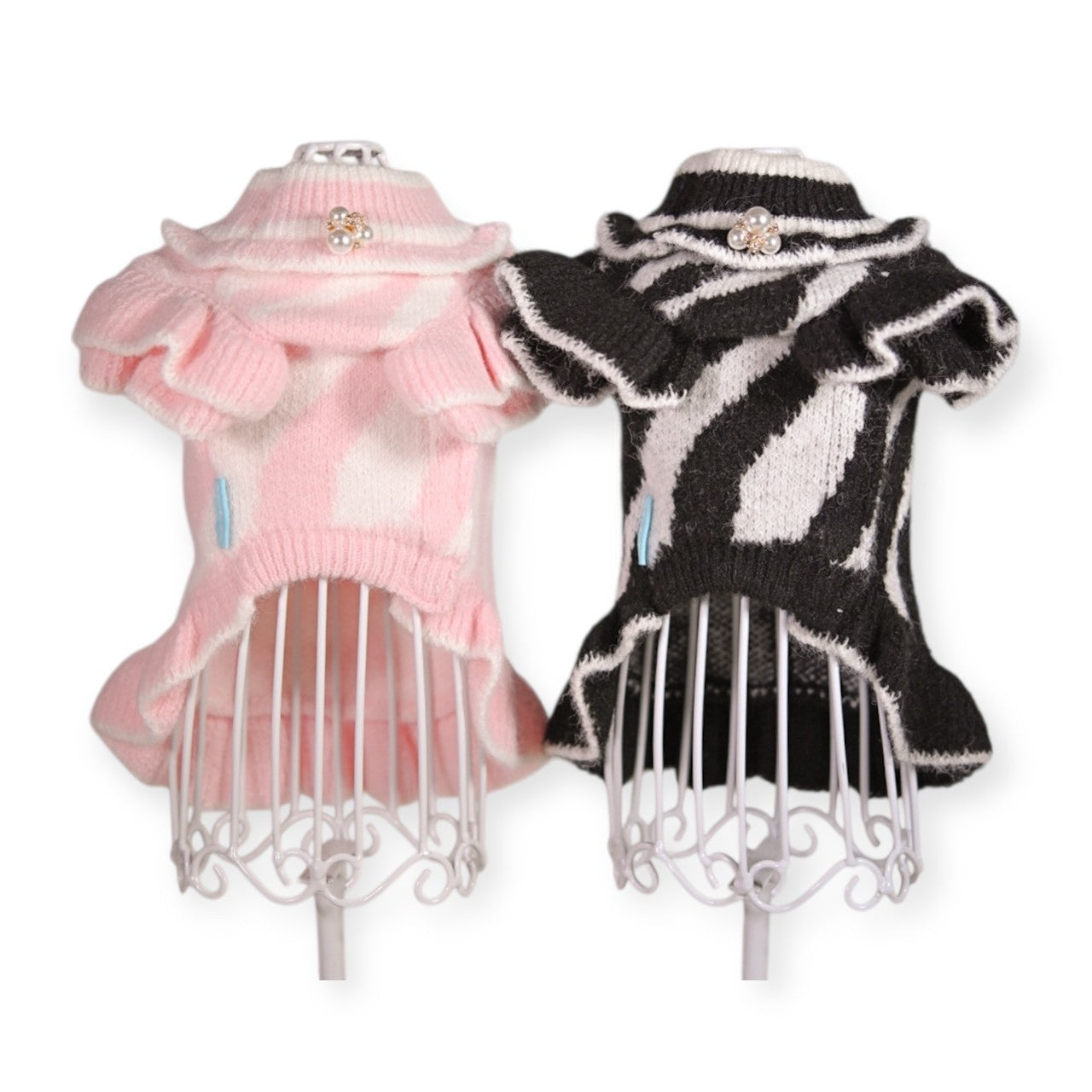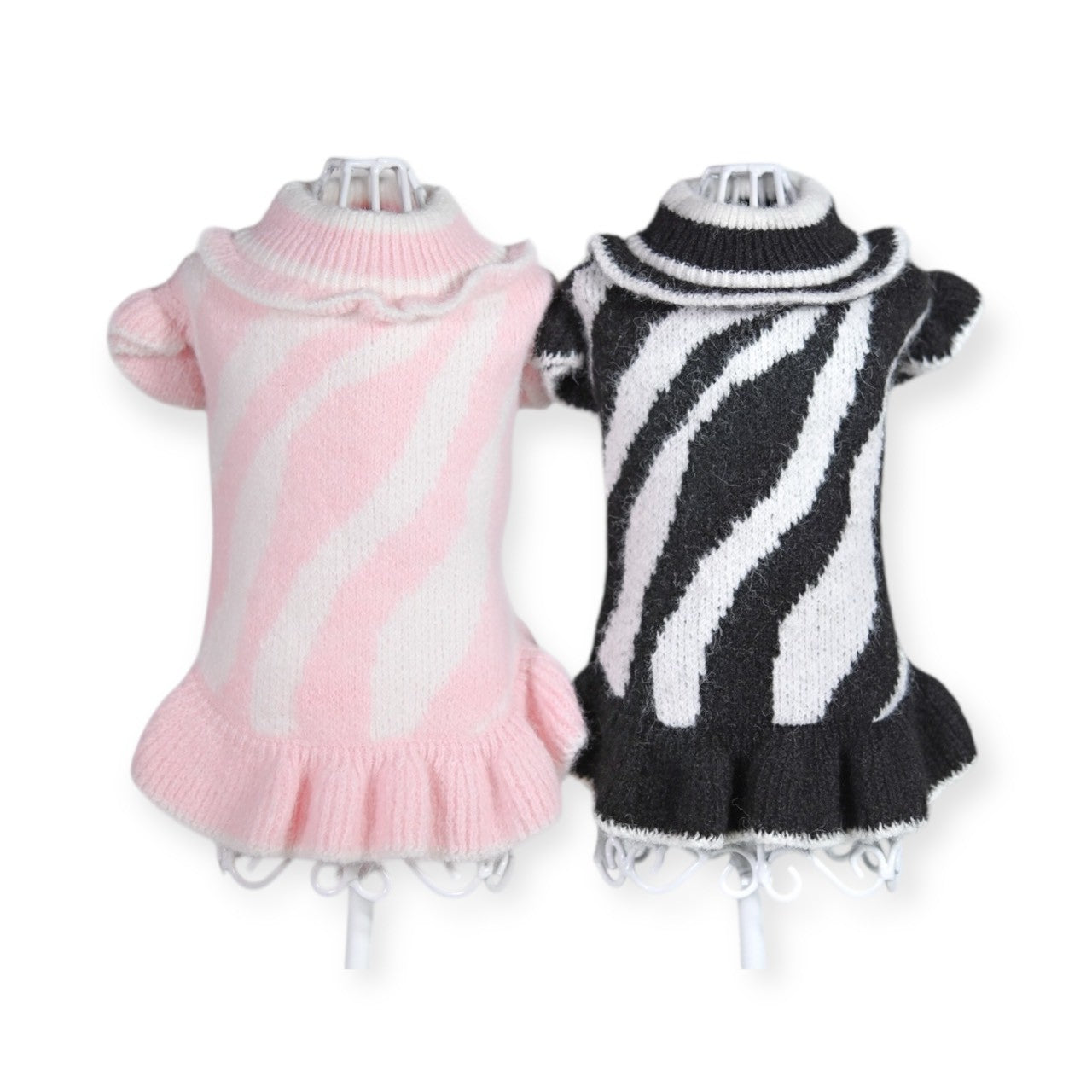 2026年 “午年” は、気持ちがすっと前向きになる、軽やかな運気をあらわすと言われています。 「うちの子にも気持ちよく過ごしてほしい」そんな想いから、やさしい印象のゼブラ柄を選びました。年賀状のお写真にはもちろん毎日のお散歩にも寄り添うデザインです。 リサイクルポリエステルを使用した、ふんわりやわらかな肌ざわりが魅力のゼブラ柄ワンピース。 軽いのにしっかりあたたかく、伸縮性がありわんちゃんの動きを妨げないストレスフリーな着心地です。 ほどよい存在感のゼブラ柄が、冬のお出かけコーデの主役に。可愛い“ピンクゼブラ”と、上品で大人っぽい“ブラックゼブラ”の2色展開。 寒い季節でも心まであたたかくなる、KALINAらしいふわふわワンピースです。 こちらの商品は 脇ぱちぱち釦あきです。 商品は、12月17日発送予定です。