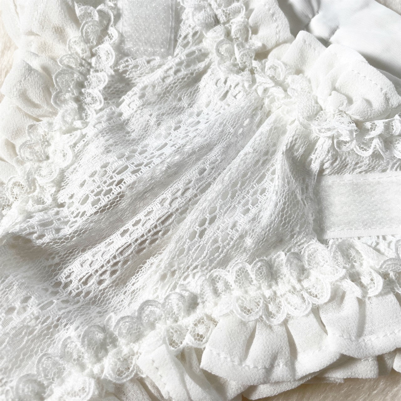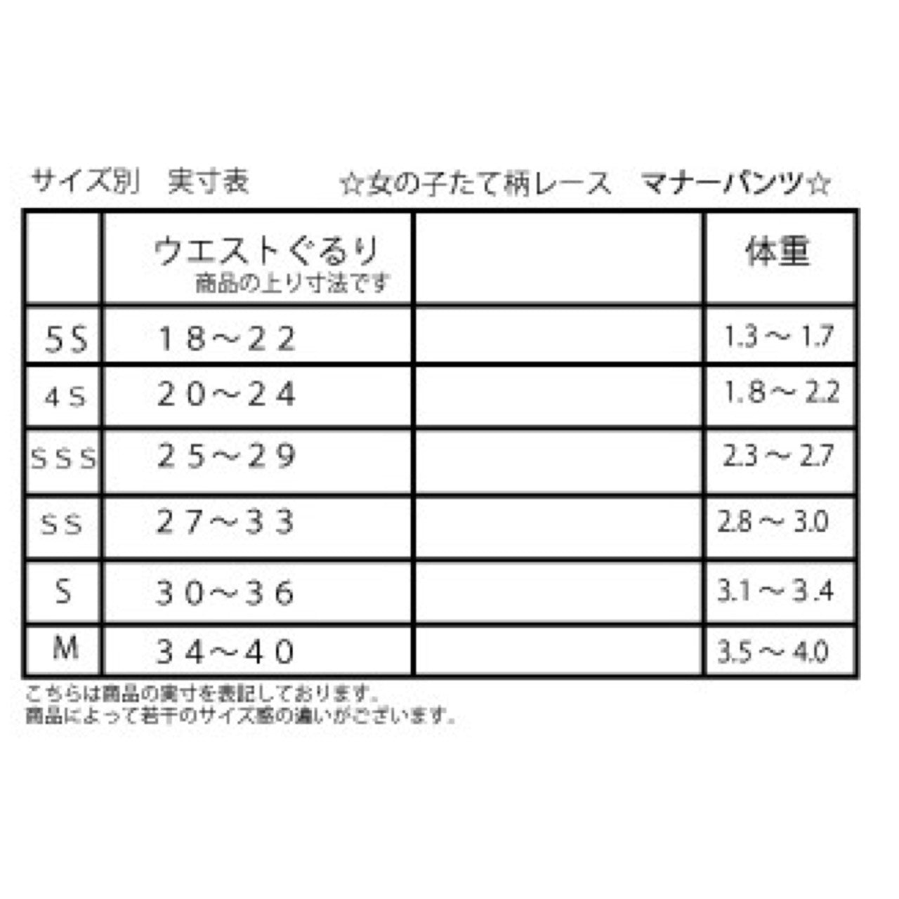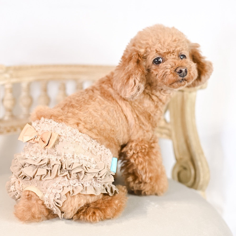 縦柄レース マナーパンツ(マジックテープタイプ)新色を追加いたしました。 フリルをたっぷりあしらった、上品なレース仕立てのマナーパンツです。 紙おむつと同じテープ仕様で着せやすく、マジックテープタイプがお好きな方にも安心してお使いいただけます。 ベージュカラーについて 「マジックテープタイプに、ベージュはありませんか?」そんなお声から、ベージュカラー をお作りしました。 縦柄レースにはベージュのお色がなかったため、ベージュには やさしい印象のお花柄レース を使用しています。白・黒には縦柄レースを使用しています。 ※胴回り31cm、ウエスト29cmのけいとは SSSサイズを着用しております。カラーは 白・黒・ベージュの3色です。サイズは 5S・4S・SSS・SS・S・M の6サイズです。お値段は 1枚 5000円になります。*サイズはサイズ表でご確認ください。ウエストサイズを確認してくださいね。*ウエストはマジックテープでとめる仕様です。*ウエストに少しですが、ゴムを使用しております。*商品の性質上サイズはピッタリサイズにする必要がございます。KALINAの試着サービス「サイズに迷ったら」300円を是非ご利用下さい。ご注文の際は、備考欄にお試しいただくサイズをご入力下さいね!