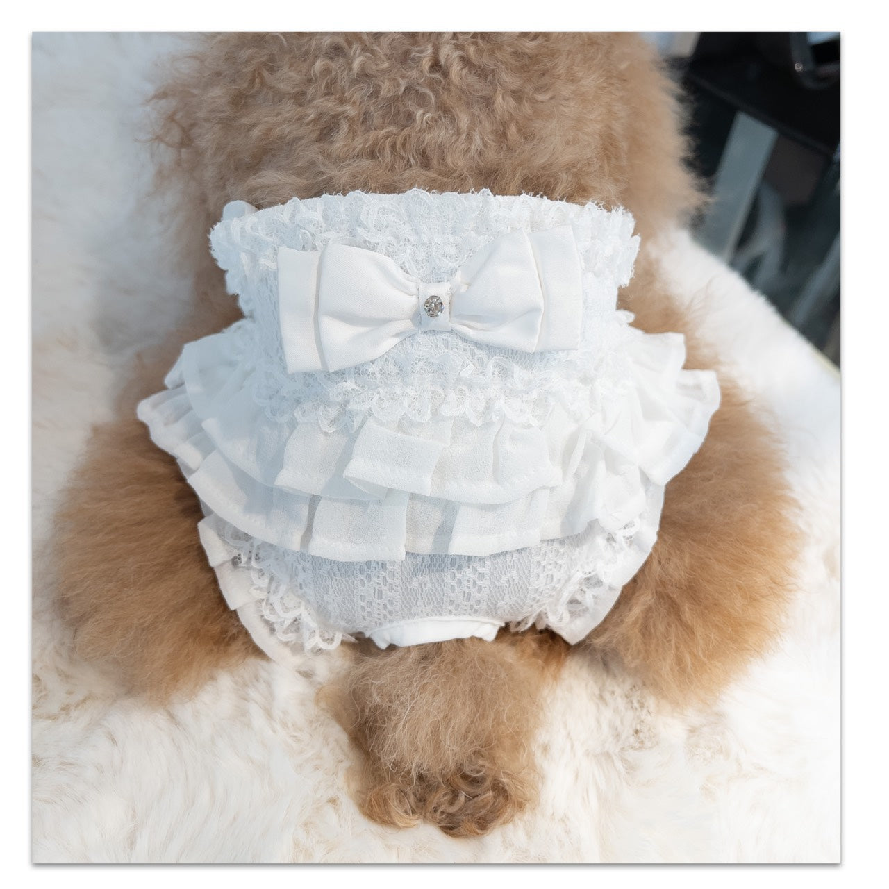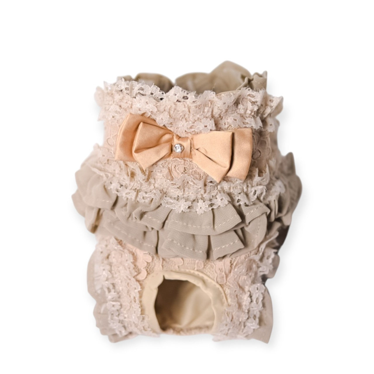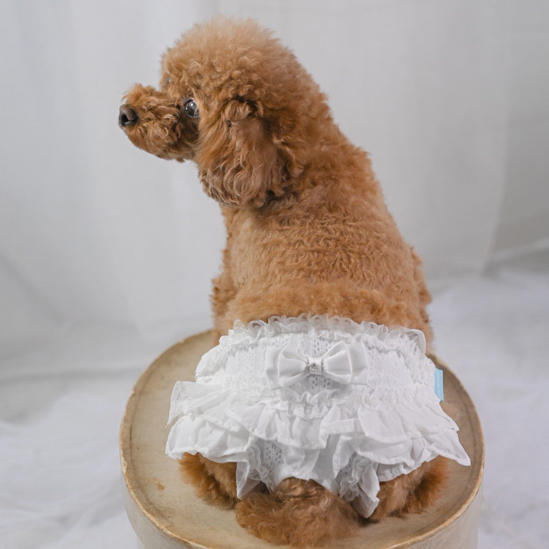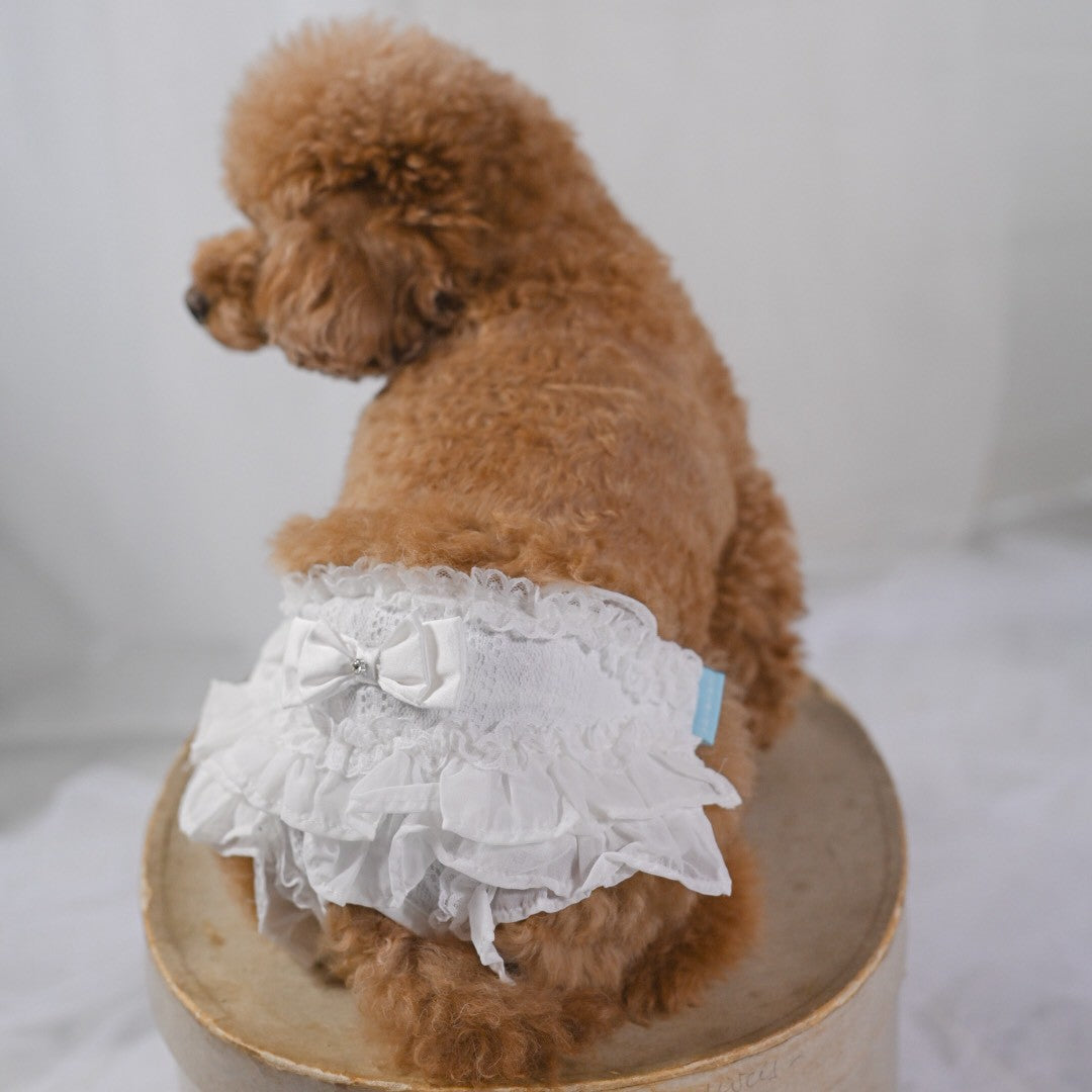 新色 黒を追加しました。 前身がシャーリングになっているので とても着心地がよいですよ。 ふんわり可愛いシャーリングデザインに、繊細なレースを重ねた上品なワンピース。胸元のリボンとフリルがアクセントになり、特別なお出かけや記念撮影にもぴったりです。 なんと、このワンピースに使われている生地は 大人気「するっと履けるマナーパンツ」と同じ素材。通気性がよく、柔らかく伸縮性もあるので、わんこにとって快適な着心地です。 デザイン:前身はシャーリング加工で体にやさしくフィット 素材感:軽やかで柔らかい生地にレースをプラス カラー:ピンク(華やかで可愛い)、ベージュ(ナチュラルで上品)、黒(これからのシーズンにぴったり) ふんわり可愛いシャーリングデザインに、繊細なレースを重ねた上品なワンピース。胸元のリボンとフリルがアクセントになり、特別なお出かけや記念撮影にもぴったりです。 ポイント:人気マナーパンツと同じ生地で安心&快適 動きやすさと可愛さを兼ね備えた一着で、普段使いから撮影会、パーティーまで幅広く活躍します。 伸縮性はありません。後ろパチパチ釦あきで着脱らくらくです。